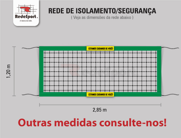 - A medida da rede padrão é de 1,20m de altura por 2,85m de largura.